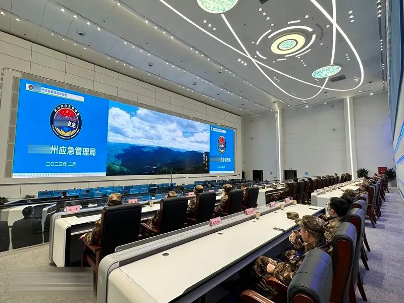州應急指揮中心大廳設置多個坐席,供指揮長、17個州級行業主管部門專員、安全生產、防震救災、森林草原防滅火、防汛防地災等工作專班進行日常值班值守,戰時協同作戰、統一指揮調度。