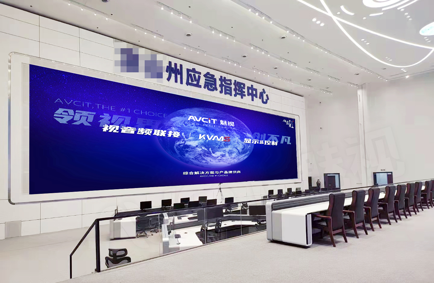 AVCiT魅視科技有幸成為四川某州應急指揮中心音視頻智能顯控設備系統提供商,深度參與指揮中心信息化智慧化建設任務:以獨具特色的光網混合分布式系統,實現某州應急指揮中心接待大廳、指揮大廳、第一指揮室、第二指揮室、第三指揮室、新聞發布廳、音視頻集中控制室、300人會議室、90人會議室等多個區域音視頻信號互聯互通,打破“各自為政”,構建“防抗救”一體化支撐平臺。