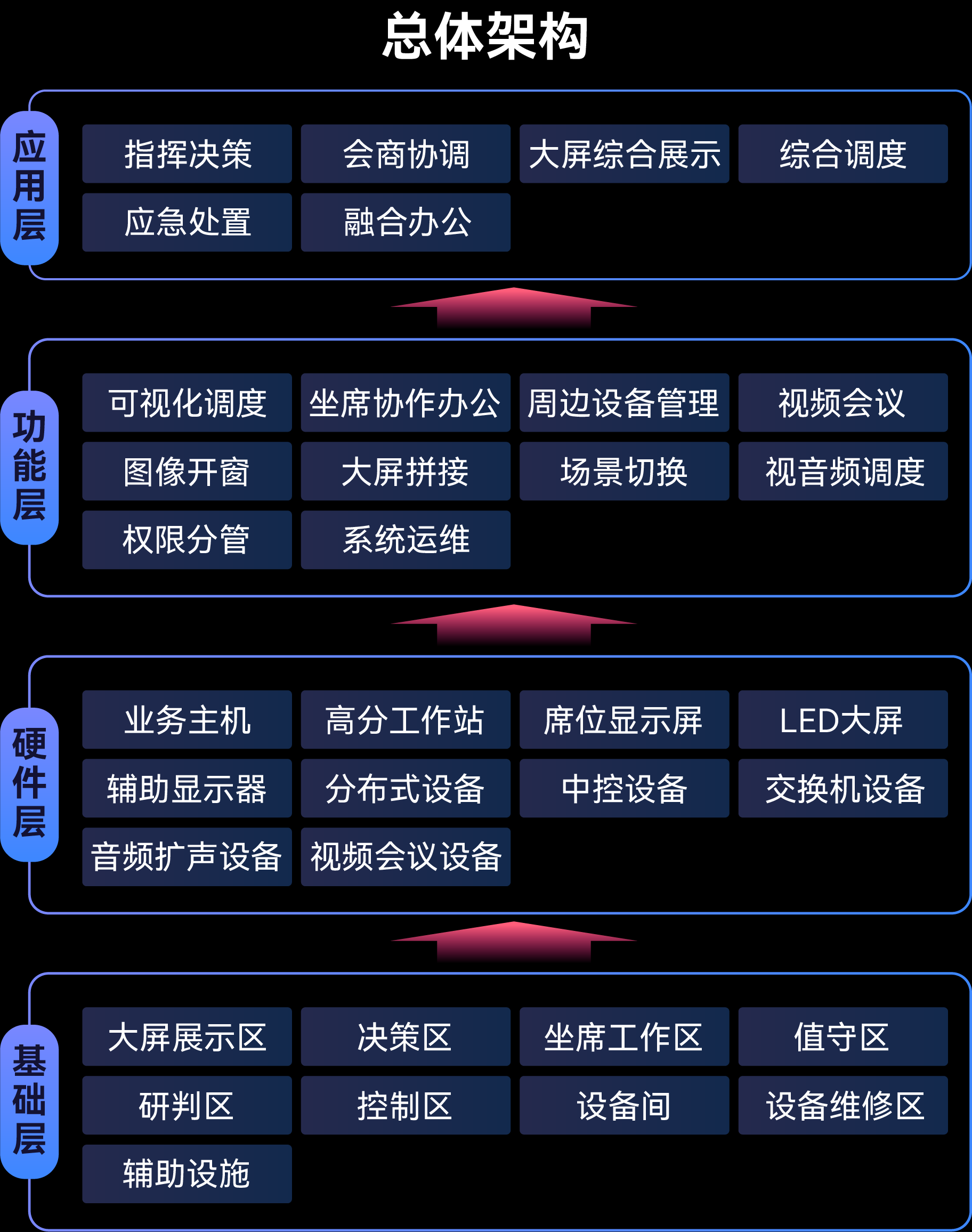 通過類區塊鏈技術,將分布式節點、AI技術與指揮中心應用場景深度融合,拔除數據煙囪;將各化工園區生產指揮數據、野外信號、衛星信號、鏈路信號、采油采氣廠信號等統一接入,構建音視頻的海量數據資源池;通過可視化管理平臺統一調度,實現人、設備、場景一張網全域協同,滿足日常監控,應急指揮,業務協同,預警預案等主體業務需求。