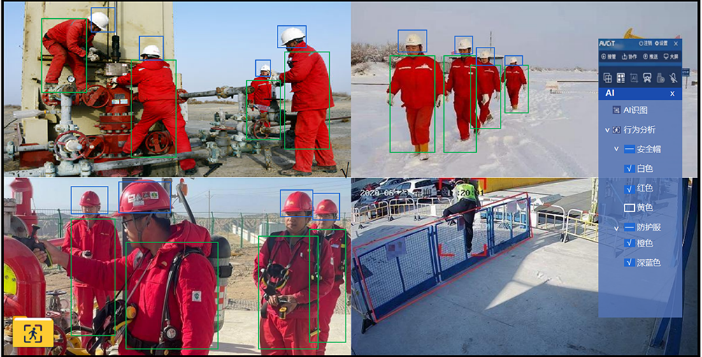 支持準確識別圖像中的人體相關信息,提供人體檢測追蹤、關鍵點定位、行為分析等能力。如:識別檢測、記錄一線員工是否佩戴安全帽、工服;對安全管控區越界闖入、逗留、徘徊的無關人員進行示警,并自動推送給管理人員及時處理,使問題和隱患能被“第一時間發現、第一時間處理、第一時間解決”。