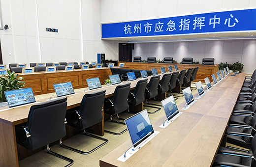 應(yīng)急指揮大廳是杭州市應(yīng)急指揮中心的核心主體,面積250平方,設(shè)40個(gè)操作席位、5個(gè)領(lǐng)導(dǎo)席位、20個(gè)部門操作臺,保障應(yīng)急指揮中心與部門分指揮中心操作環(huán)境完全一致,構(gòu)建領(lǐng)導(dǎo)主屏駕駛、跨部門高效協(xié)作的多席位運(yùn)作指揮模式。