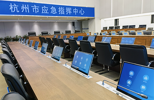 通過視聯(lián)網(wǎng)和無紙化會議系統(tǒng),杭州市應(yīng)急指揮中心向上可連接國家各部委、浙江省政府,向下連接各區(qū)縣、村鎮(zhèn),橫向連接市級各部門,實(shí)現(xiàn)實(shí)時(shí)會商和高效信息溝通。