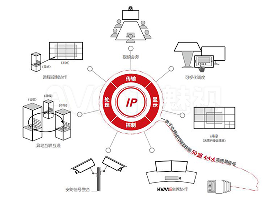 IP分布式,不管是系統架構定位于“去中心化”的極簡模式,還是做到對“大屏同步拼接、可視化顯示控制、遠程控制協作、異地互聯互通、網絡碼流整合、KVMS坐席協作”技術性能的大集成,都可看出AVCiT魅視對于產品底層系統架構和上層功能架構極簡設計的擁護。