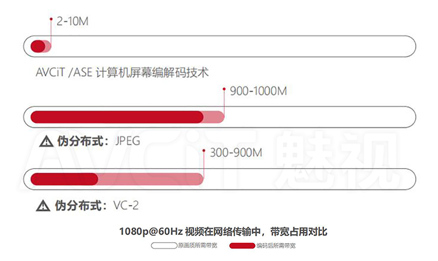 拔本塞源,AVCiT魅視圍繞現有H.265并投入大量的時間進行研發,最終實現了對編碼技術的二次升級開發,成功首創研發出業內獨有的“ASE計算機屏幕編碼技術”——新技術的引入,實現“原圖畫質 2-10M超低碼率傳輸”,并解決“在一條千兆網絡上傳輸50路4:4:4高質量信號”的行業技術瓶頸,讓用戶不必再面對“圖像質量與算法、碼率與帶寬”之間魚和熊掌不可兼得的兩難局面。