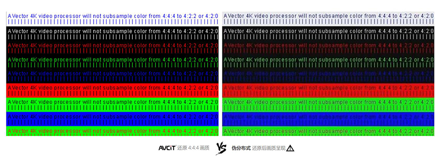 同時,對于專業音視頻行業而言,顯示是基礎,IP分布式除了完成在架構和功能上的迭代升級外,圖像畫質也是衡量一個產品系統底層架構優劣的硬標準。當我們在討論視頻圖像畫質的好與不好,就不得不提到影響畫質決定性因素,即系統采用的編解碼協議。
