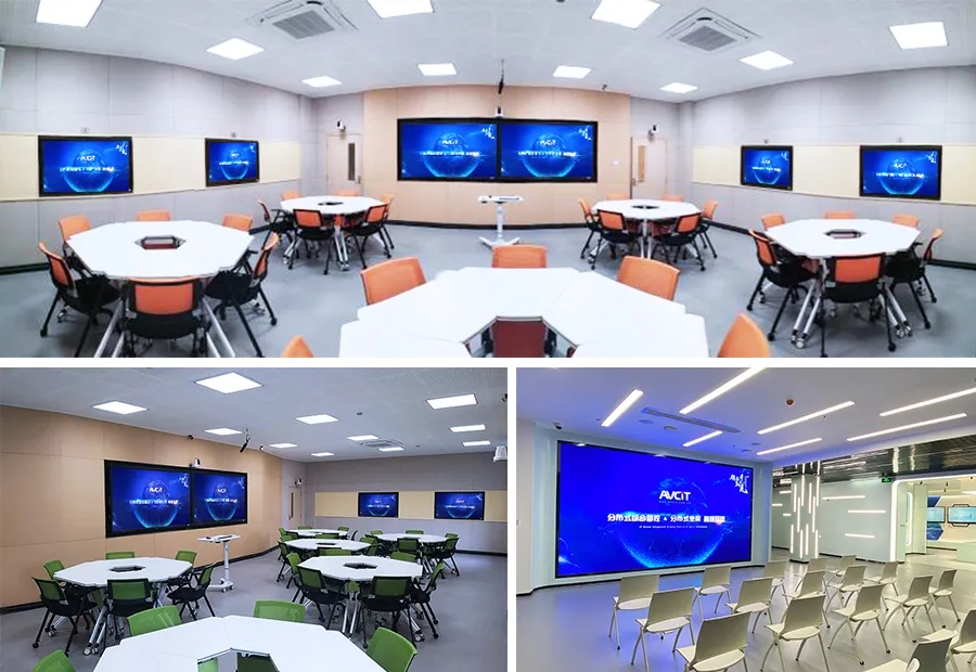 打破空間限制進行跨課室、跨樓層、跨區域互聯互動,實現一鍵即可快速完成大小課、互動授課、學術交流等多種日常教學和研討等場景、模式的自由切換,打造更具靈活性、更具沉浸式體驗的教學氛圍,提供更優質的視聽效果。在智慧校園建設中,AVCiT魅視分布式綜合管控系統“智能環控”功能,高效集成了音響、燈光、空調、電源、攝像頭、環境狀態監測等第三方設備控制并進行統一管控。
