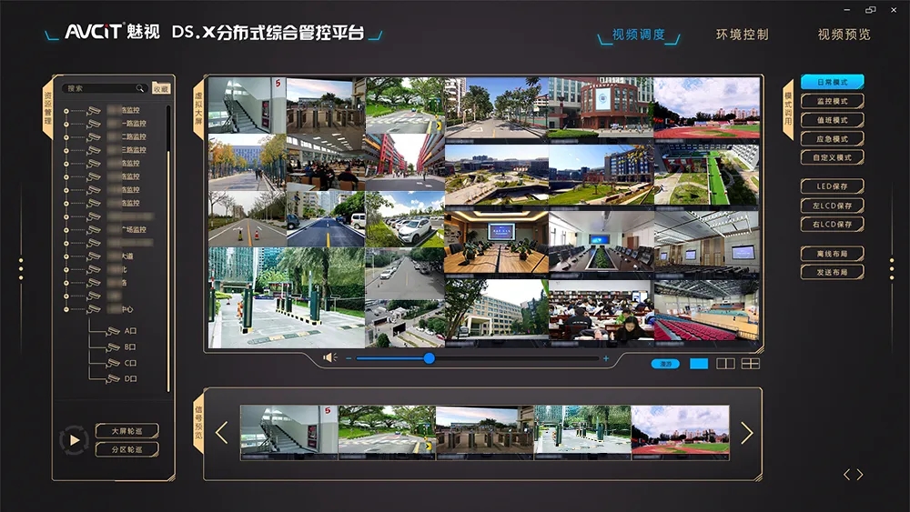 助力“安全校園”建設,提升學校區域治安綜合防控能力,AVCiT魅視分布式綜合管控系統“多元獲取、整編融合”功能,“一個界面”實現安保與音視頻統一調度管理,形成以“校園安保部門”為中樞,學工、后勤等各相關部門協同聯動,高效響應校園突發事件,提高應急處置能力和效率。