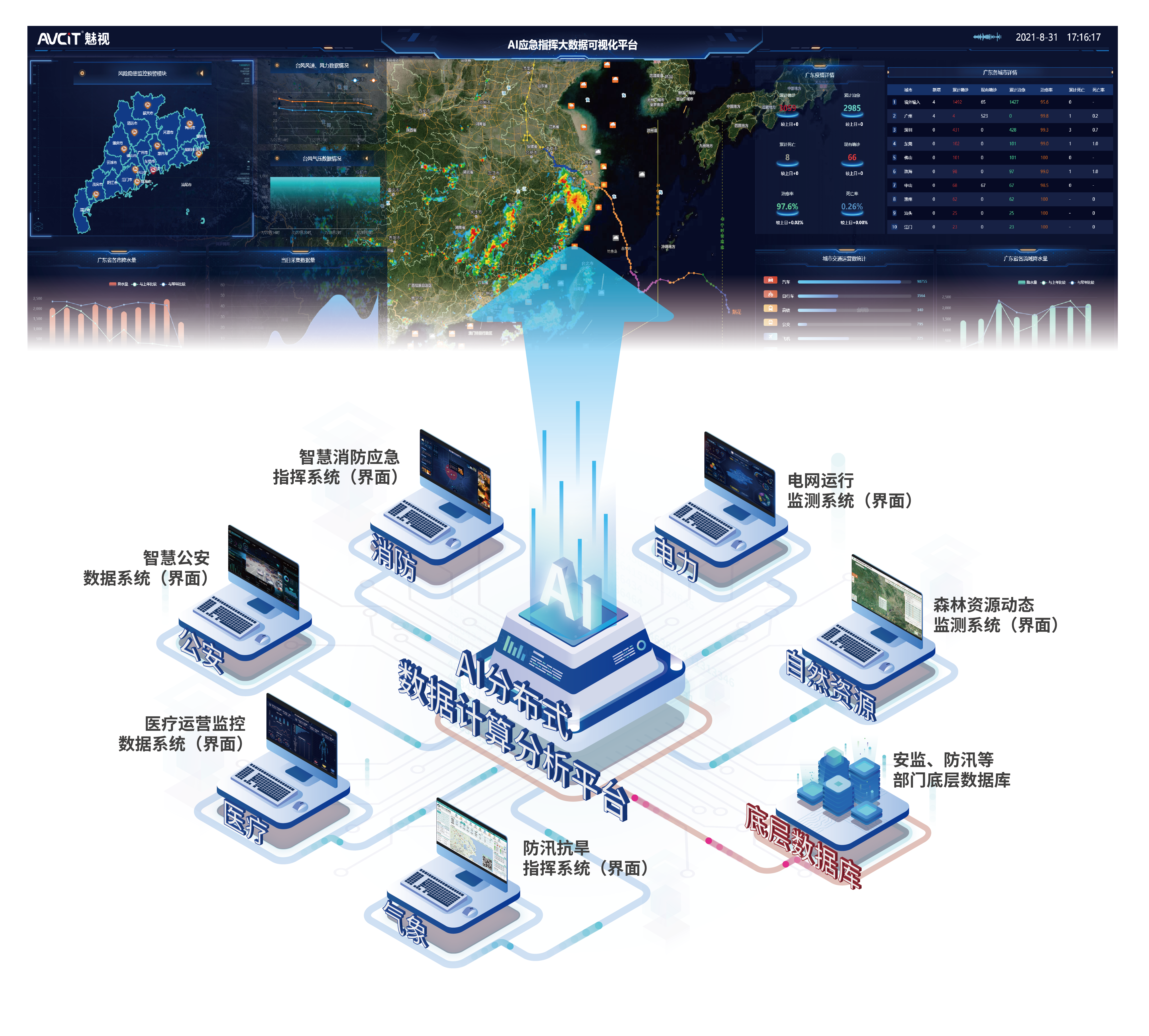 相對底層數(shù)據(jù)庫對接的數(shù)據(jù)采集方式,魅視AI大數(shù)據(jù)可視化平臺創(chuàng)造性地將AI算力、大數(shù)據(jù)、圖像識別技術(shù)與指揮中心業(yè)務(wù)應(yīng)用場景高度融合,數(shù)據(jù)處理、呈現(xiàn)智能快捷豐富,改變了原先數(shù)據(jù)獲取難、耗時耗力的局面,化繁為簡,大大縮短建設(shè)周期。