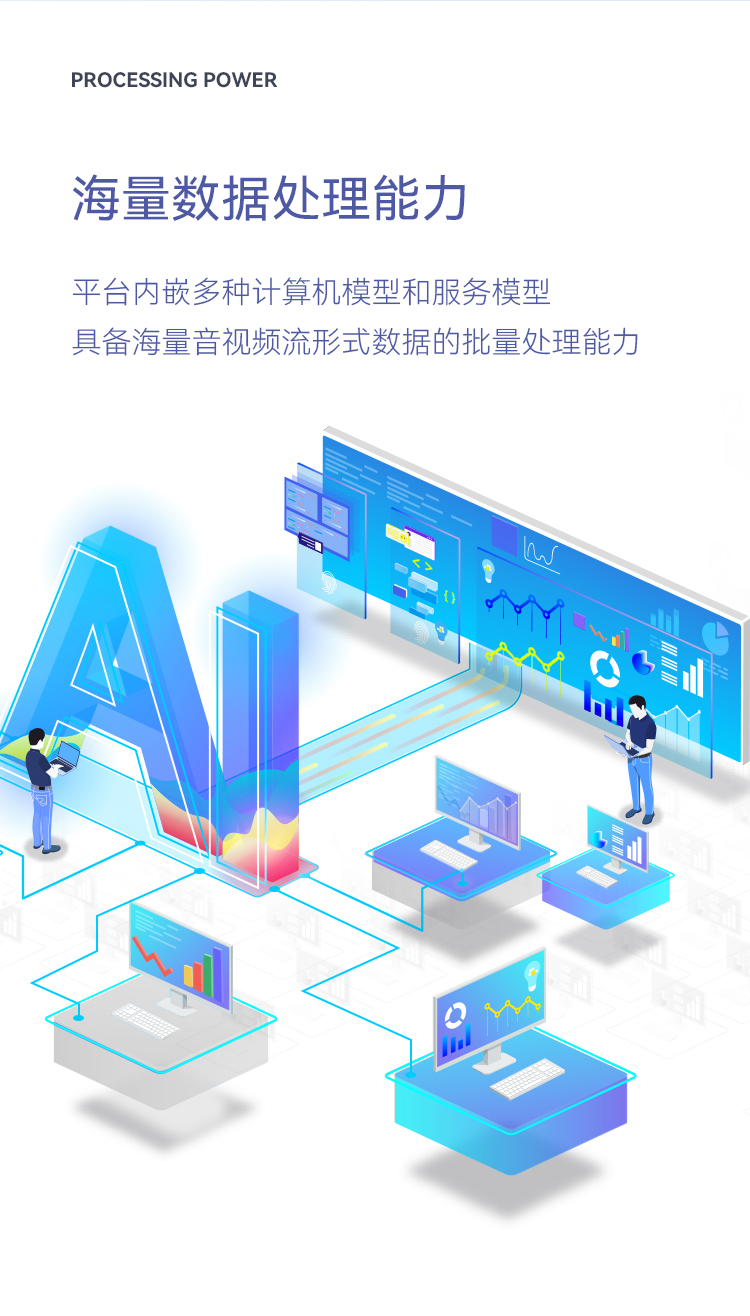 平臺內嵌多種計算機模型和服務模型,具備海量音視頻流形式數據的批量處理能力。