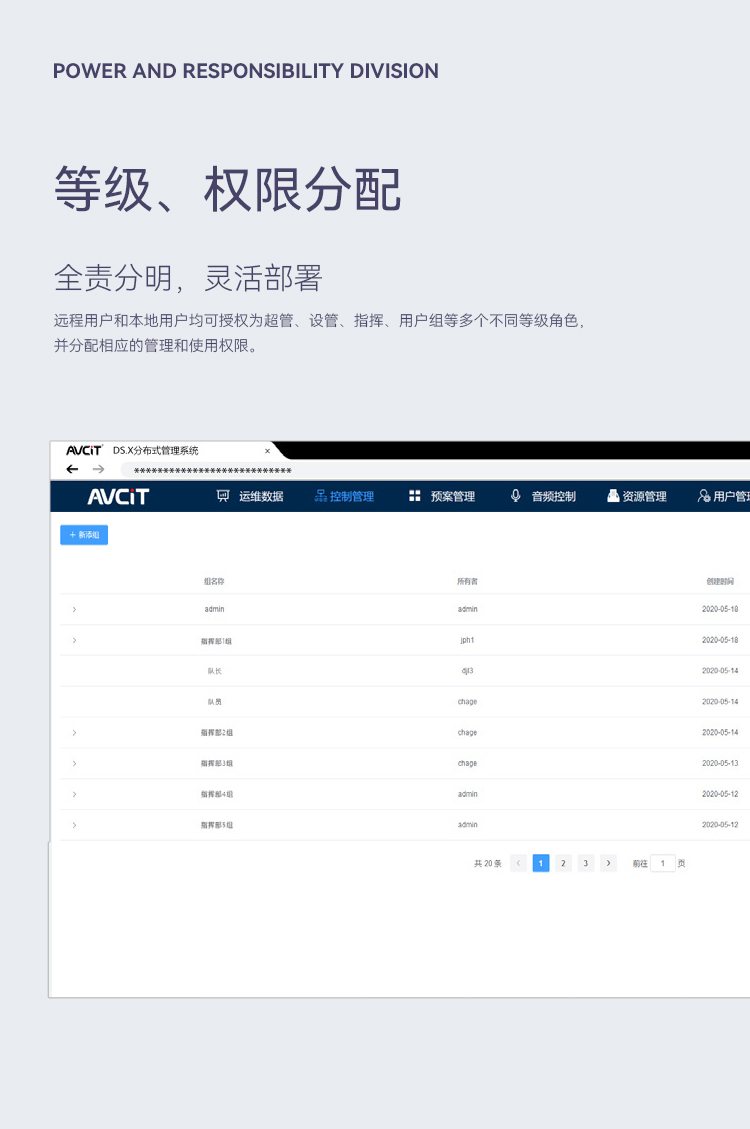 遠程用戶和本地用戶均可授權為超管、設管、指揮、用戶組等多個不同等級角色,并分配相應的管理和使用權限。