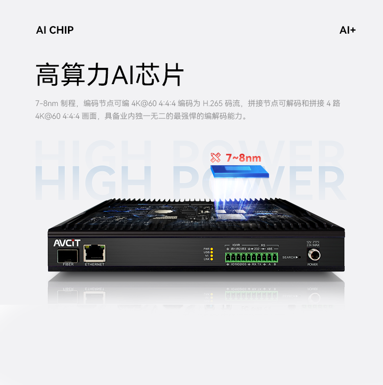 7-8nm制程,編碼節點可編4K60 4:4:4編碼為H.265碼流,拼接節點可解碼和拼接4路4K60 4:4:4畫面,具備業內獨一無二的最強悍的編解碼能力。
