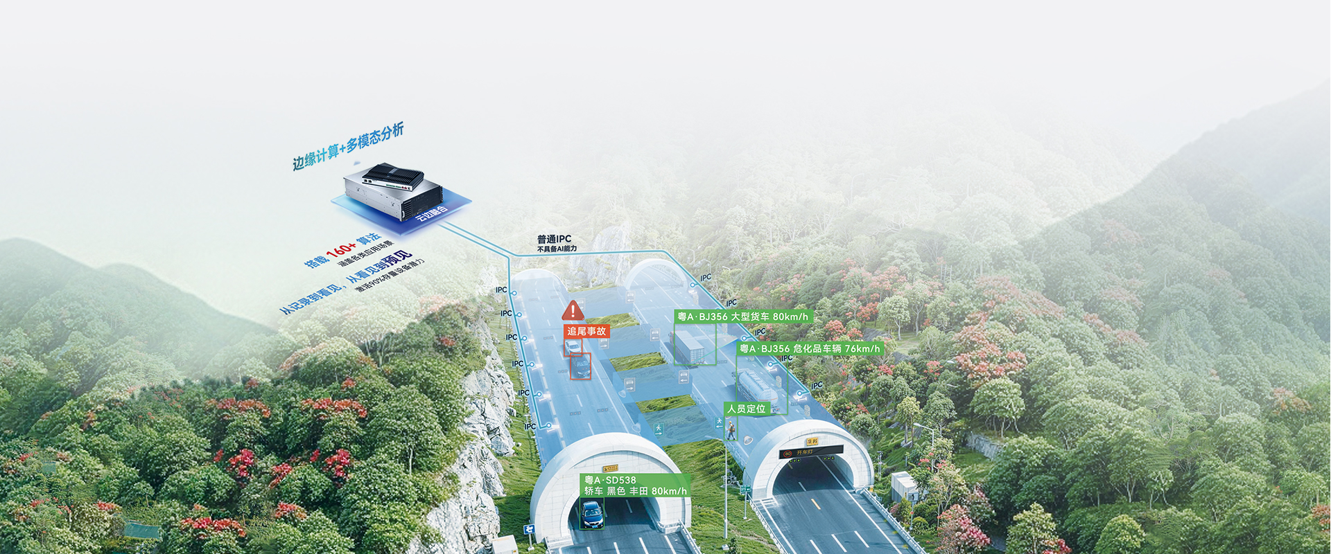 基于邊緣計(jì)算與多模態(tài)大模型,構(gòu)建 AI 事件檢測與統(tǒng)一管控體系,打造隧道聯(lián)網(wǎng)監(jiān)控一張網(wǎng),