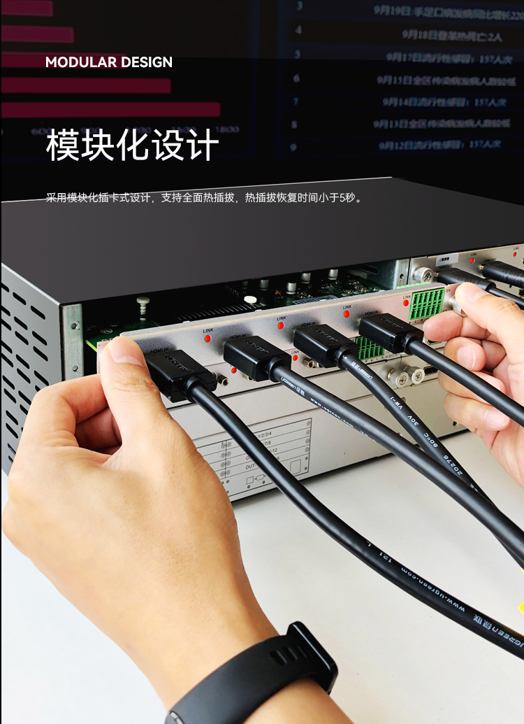 采用模塊化插卡式設計,支持全面熱插拔,熱插拔恢復時間小于5秒。