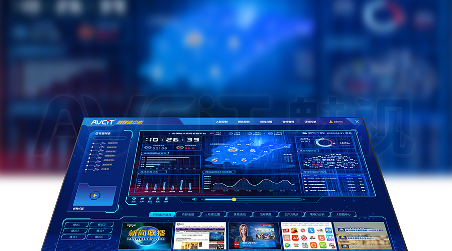 (二)面向信號的高清可視化管控。融媒體中心全面整合節目生產流程、內容選題、地理位置、視頻連線、發布調度、生產力統計、影響力分析以及輿情監控等各種數據,利用可視化顯示終端,并基于AVCiT魅視分布式系統“可視化管理功能”和自主研發的“計算機屏幕編碼技術”,進行可視化預覽調度、高清可視化圖像推送上屏、可視化輪詢顯示,實現“顯控用融”一體化,將各種視頻資源按需在指揮大屏上進行4:4:4原生畫質展示,為廣播、電視、新媒體等業務部門提供節目融合生產的總指揮調度和精準決策輔助。